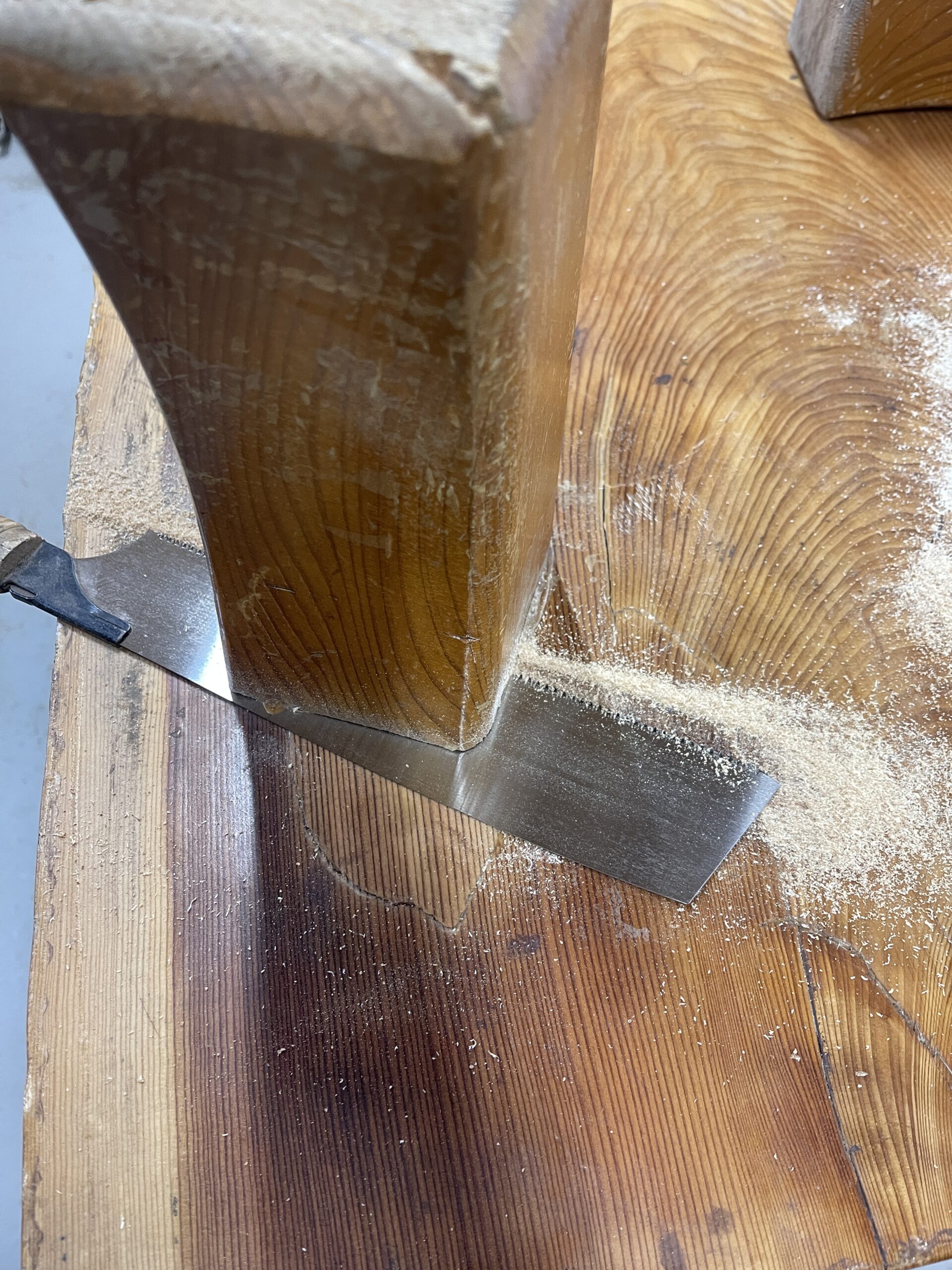 ボンドで固められていた脚を切り離し、テーブル用に厚みを落として、再塗装しました。
